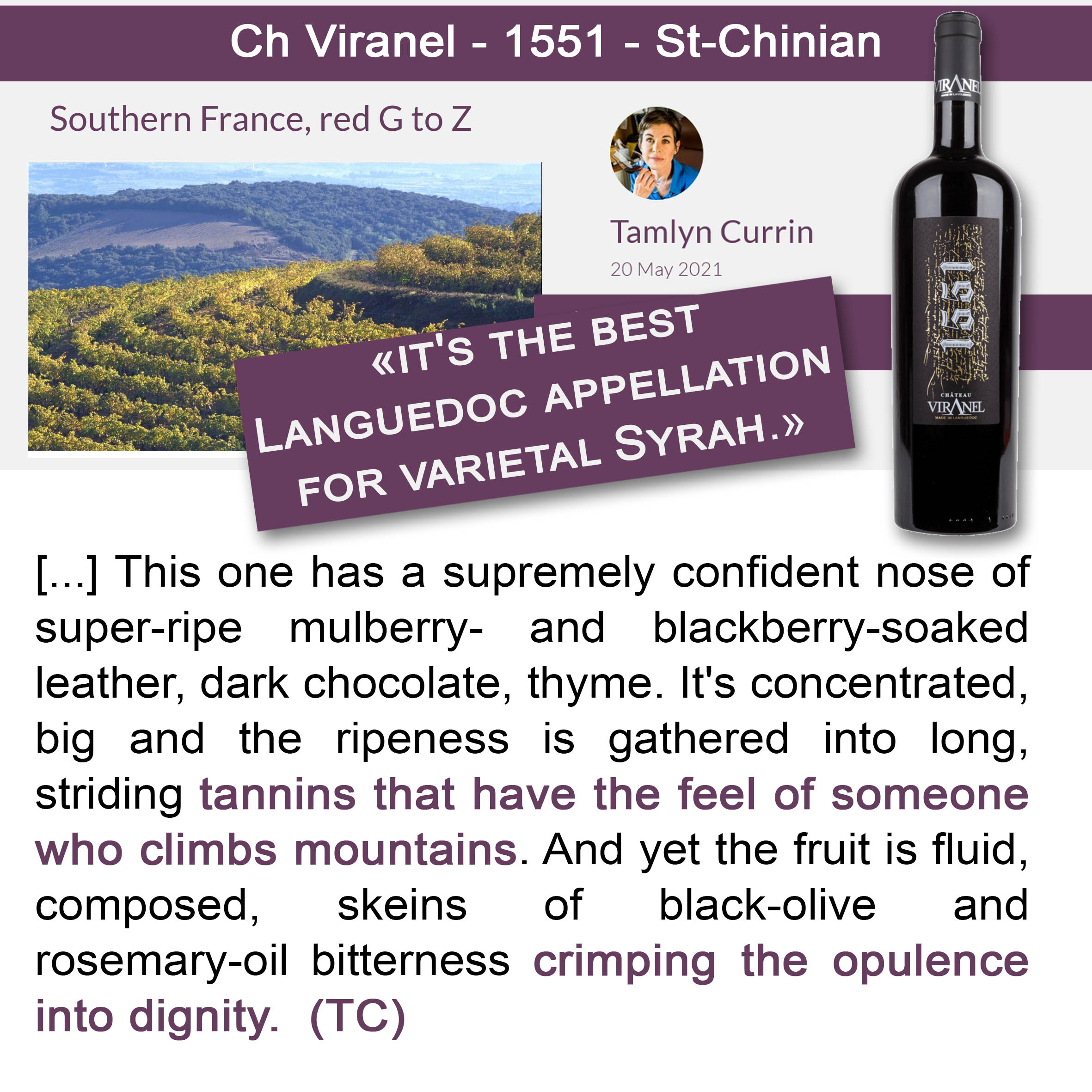 Dégustation - Tamlyn Currin - SIGNATURE 1551 - Languedoc & AOP